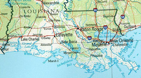 Louisiana (reference map), Louisiana Acadian region, 2002. Map by US Geological Survey. Courtesy of the Perry-Casañeda Map Collection, University of Texas.
