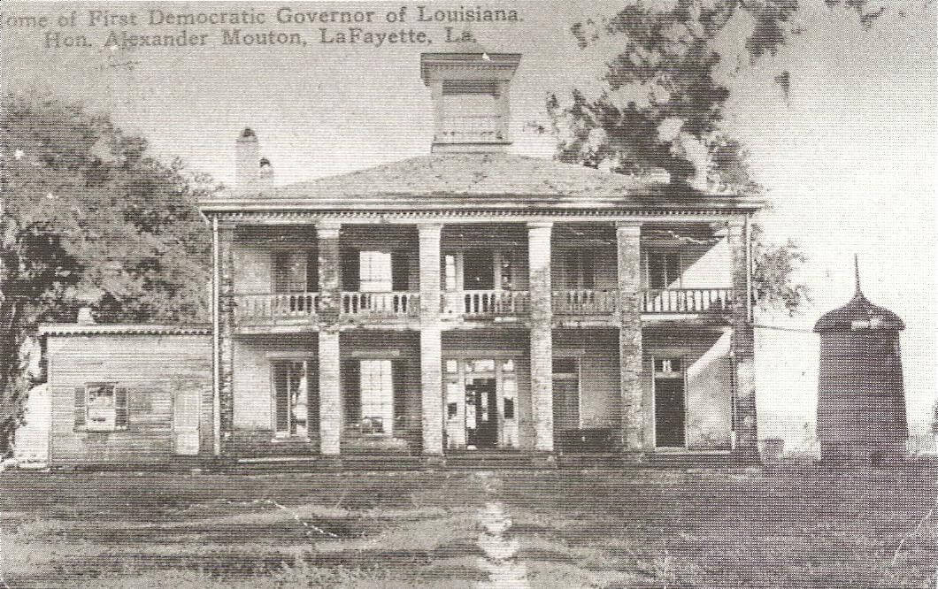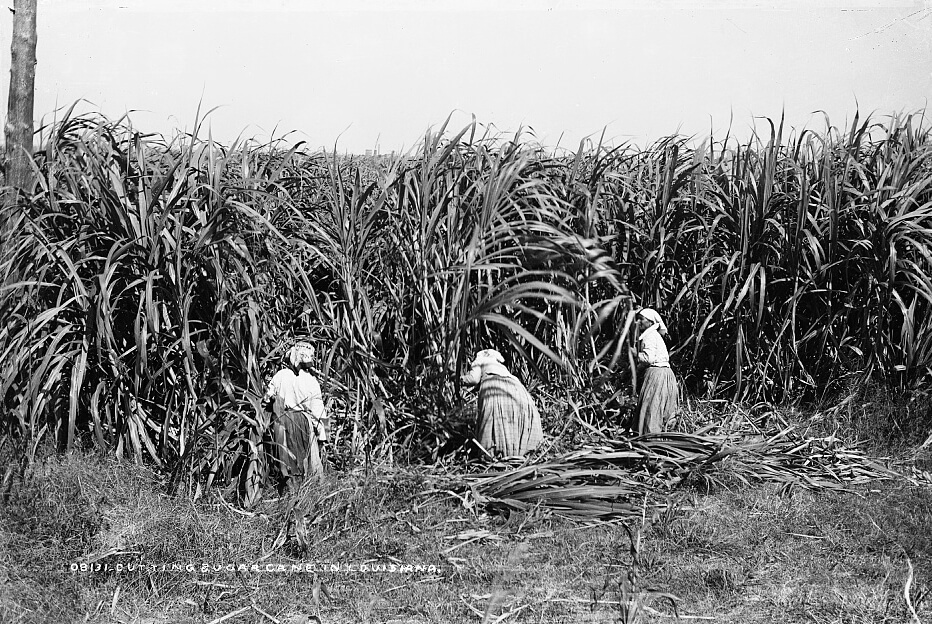 Alexander Mouton house at Ile Copal, within present limits of Lafayette, Louisiana, ca. 1900. Postcard book by Jean S. Kiesel. Courtesy of Wikimedia Commons. Image is in public domain.Cutting sugar cane in Louisiana, ca. 1880–1897. Photograph by William Henry Jackson. Courtesy of  Detroit Publishing Company Photograph Collection. Library of Congress Prints and Photographs Division Washington, DC.