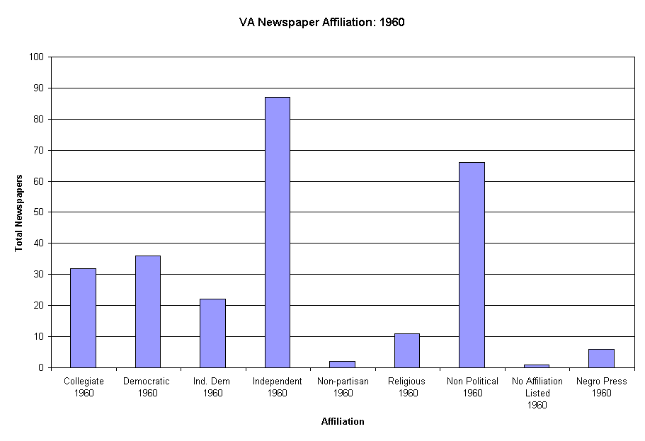 Table 1: Virginia Newspapers and Periodicals Affiliation, 1960. Data from N. W. Ayer and Sons Directory of Newspapers and Periodicals, 1960. Philadelphia: N. W. Ayer, 1930-1969.