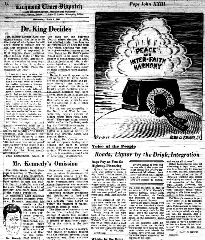 "Dr. King Decides," Richmond Times-Dispatch, June 5, 1963.