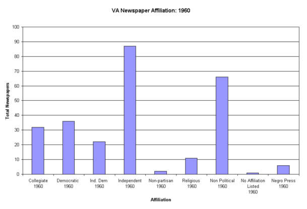 Over time the circulation rates and affiliations of major papers in the state shifted and became more independent. By 1960 the number of non-partisan, independent, and independent-democratic papers significantly outnumbered those affiliated with the Democrats.
