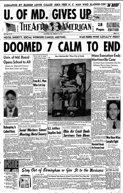 Front page of the Baltimore Afro-American, February 10, 1951. Scan courtesy of Flickr user Washington Area Spark. Creative Commons license CC BY-NC 2.0.