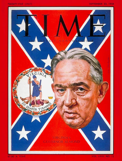 "Integration anywhere means destruction everywhere," Almond told Virginians who he said faced "an ever deepening constitutional crisis." Almond was an excellent orator who used television interviews and speeches to make his case for continued segregation in schools. His inaugural speech, carried live on nearly all Virginia television stations, presented a narrative of the growing threats of central power and diminished individual liberties. It reached back into southern history and carried these themes forward into the southern present.