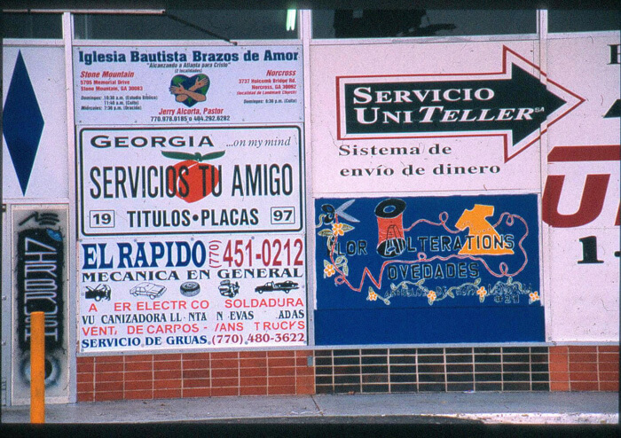 Signs outside of the Buford Highway Flea Market. Chamblee, Georgia. Photo by Mary Odem, 2001