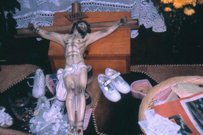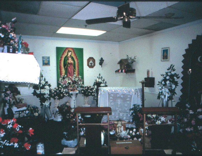 Offerings in the Blessed Sacrament Chapel in the Misión Católica. Doraville, Georgia. Photo by Mary Odem, 2000