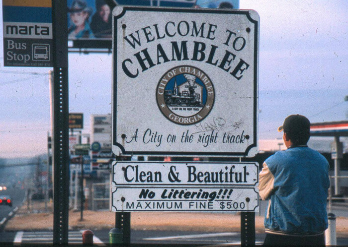 Street sign on Buford Highway. Chamblee, Georgia. Photo by Mary Odem, 2001
