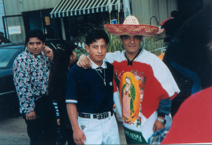 Two men at the Feast Day celebration in honor of Our Lady of Guadalupe, Misión Católica. Doraville, Georgia. Photo by Mary Odem, 2000