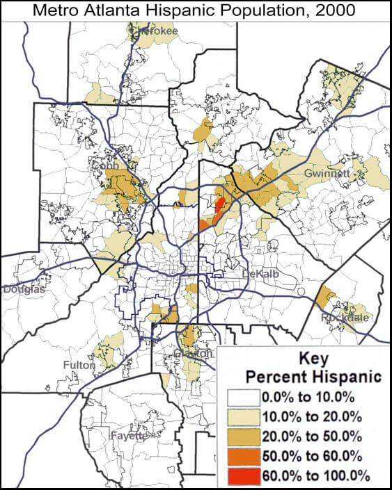 Over the past two decades, hundreds of thousands of men and a growing number of women and children from Mexico and other parts of Latin America have migrated to the Atlanta, Georgia metropolitan region to find work in its thriving economy. According to the Census, Atlanta has experienced the most rapid Hispanic growth rate of all major US metro areas during these years. As a new immigrant destination, Atlanta has presented distinct opportunities and constraints to Mexicans and Central Americans seeking to live and work there. Immigrants have been drawn by the huge demand for labor in the construction, landscaping, restaurant, and service industries, and by the availability of cheap housing in form of numerous low-rent apartment buildings.
