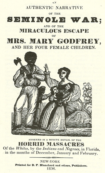 Godfrey, Mary.An Authentic Narrative of the Seminole War; and of the Miraculous Escape of Mrs. Mary Godfrey, and her Four Female Children. New York: D. F. Blanchard and others, 1836.