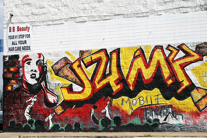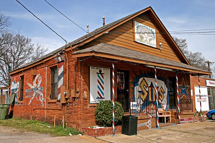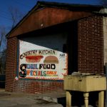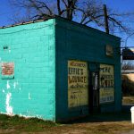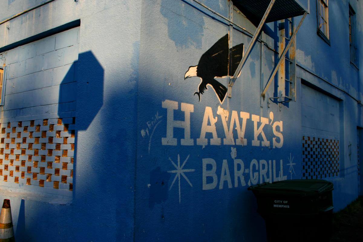 While I didn't seek out hand-painted signs, I noticed their emergence as a pattern in my photo travelogue of Memphis shortly after I moved here in 2004. I felt drawn to their imperfect beauty. In a city of much poverty, racism, and crime, the sheer volume of these colorful hand-painted signs speaks of persistent creativity and the spirit of small business. The sheer volume of these signs in the city affirms the popularity of this mode of expression and suggests that small businesses continue to function as cultural landmarks at the center of neighborhood geography, despite the encroachments of corporate chains and developer-planned communities. Owners often collaborate with local artists, as in the case of the mural at Hawk's Bar & Grill, painted by James "Brick" Brigance. A native of Orange Mound, Brigance adorned many neighborhood buildings with hand-stenciled and freehand advertising for local businesses. Such work suggests that small-business advertising can be a collective endeavor, relying on neighborhood talent and artistic vision.