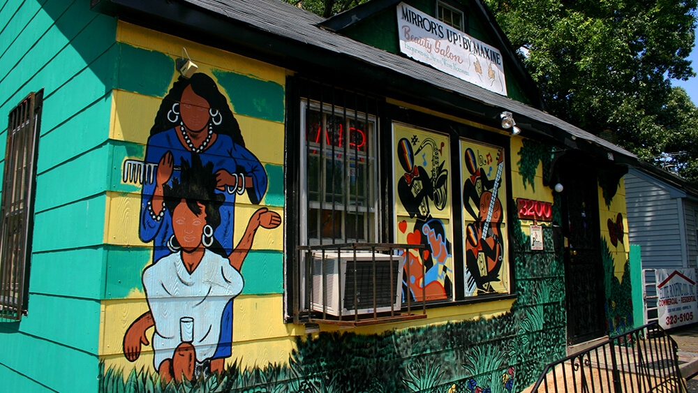 While I didn't seek out hand-painted signs, I noticed their emergence as a pattern in my photo travelogue of Memphis shortly after I moved here in 2004. I felt drawn to their imperfect beauty. In a city of much poverty, racism, and crime, the sheer volume of these colorful hand-painted signs speaks of persistent creativity and the spirit of small business. The sheer volume of these signs in the city affirms the popularity of this mode of expression and suggests that small businesses continue to function as cultural landmarks at the center of neighborhood geography, despite the encroachments of corporate chains and developer-planned communities. Owners often collaborate with local artists, as in the case of the mural at Hawk's Bar & Grill, painted by James "Brick" Brigance. A native of Orange Mound, Brigance adorned many neighborhood buildings with hand-stenciled and freehand advertising for local businesses. Such work suggests that small-business advertising can be a collective endeavor, relying on neighborhood talent and artistic vision.