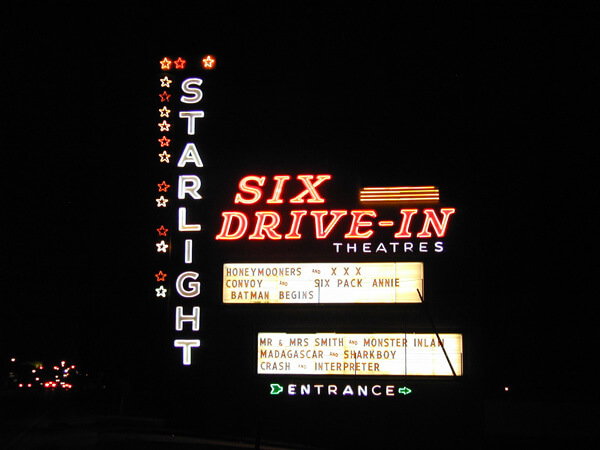 Rising gasoline prices and the growing home video industry pushed the Starlight, and many other drive-ins, into desperate times in the 1970s and 1980s. X-rated films and a weekend flea market helped keep the gates open. The Starlight Six owes its rejuvenation to an unusual collaboration in the late 1990s between corporate ownership and local drive-in fans. Over 75 percent of drive-ins are individually-owned small businesses.41Robin T. Reid, "The Drive-In Theater Turns 75," Smithsonian.com, 28 May 2008  The Starlight Six is owned and operated by the De Anza Land and Leisure Corporation, a family-run business that once owned over forty drive-ins across the country, and which now operates seven drive-ins in California, Arizona, Utah, and Georgia.42"South Bay Drive-In," Cinema Treasures, http://cinematreasures.org/theater/15105/; Evelyn Barge, "Big picture, bright lights: Illuminating the area's most colorful silver screens," San Gabriel Valley Tribune, 23 May 2008, ; and Jay Allen Sanford, "Drive-In Theaters in San Diego: Complete Illustrated History 1947 thru 2008," San Diego Weekly Reader, 1 August 2008, online version, http://www.sandiegoreader.com/weblogs/bands/2008/aug/01/drive-in-theaters-in-san-diego-complete-illustrate/. When Atlanta's only other active drive-in, the North 85 Twin, closed in 1998 to make way for a multiplex, nostalgia over its loss combined with the "retro" revival to renew interest in the Starlight Six.43Henry, "Drive-In Revival"; Joey Ledford, "Lane Ranger; Twin's dark screens dim colorful past," Atlanta Journal and Constitution, 12 June 1998, C2; and Craig Schneider, "One last flick draws thousands; North 85's final screening has deep impact on nostalgic baby boomers," Atlanta Journal and Constitution, 15 June 1998, C1. In 1999, a conversation between local surf-rock guitarist Scott Rogers and the Starlight Six's Teri Oldknow led to a three-day festival of bands, muscle cars, overnight camping, and B-movies.