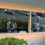 Most drive-in theaters pay significant fees — up to eighty to ninety percent of the box office take — to screen films. Concession sales and auxiliary business ventures are vital in keeping the gates open and screens lit. Like many other drive-in theaters, the Starlite hosted a Saturday flea market. In addition, as the Walther, Colt, and Ruger window decals on the projection booth testify, late proprietor Robert "Bob" Groves opened a gun shop and video club shortly after he acquired the theater in 1987.29Anne Krishnan, "Movies Under the Stars; Starlite Drive-In remains Durham institution," Herald-Sun [Durham, NC], 10 July 2004, A1.