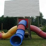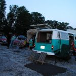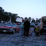 The Tiger barely has space for two hundred cars, but on an early June Saturday night it fills rapidly. As showtime approaches, early arrivals are asked to shift their cars to accommodate additional vehicles. The snack bar features hotdogs and popcorn, as well as Black Angus burgers. Children play on brightly-colored swings and slides in front of the screen; "Red Rubber Ball," "The Sloop John B," and the "Ballad of the Green Berets" loop from a CD boombox broadcast over the theater’s sound system. This Saturday night is also the monthly Year One Hot Rod Night at the Tiger. Classic cars like the owner's 1957 Corvette share space with a row of "rat rod" VWs and dune buggies.