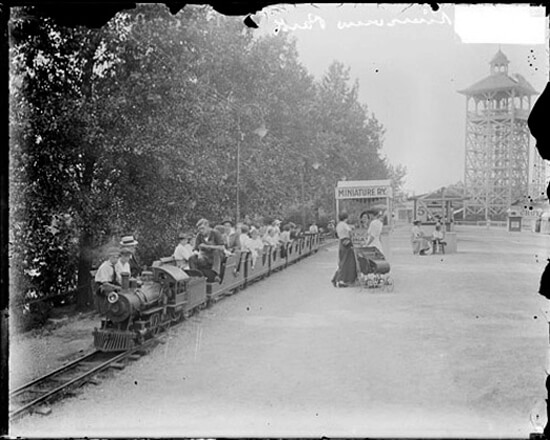 For the already electrified trolley companies, setting up smaller versions of the vehicles they already ran on city streets in the form of early rides like the scenic railway or the miniature railway represented another strategy for economic diversification and added income generation. City dwellers did not need to ride the trolley to work on weekends, so trolley companies created desirable destinations to entice users into the streetcar.
