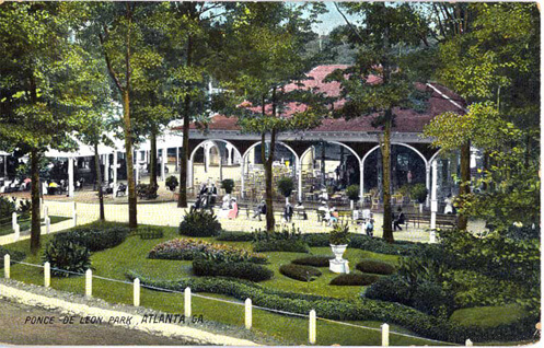 The development of Ponce de Leon Springs into Ponce de Leon Park mirrors the transformation of Atlanta from railroad town to modernized metropolis. While the physical distance between downtown and the park was just over two miles, the histories of town and park intertwine as both spaces adoped and adapted to new technologies and social perspectives. This essay situates the development of Ponce de Leon from roughly 1870 to 1920 within larger trends in recreation and transportation as both the park and the city of Atlanta strove for regional and national recognition.