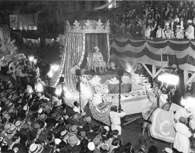 | The King of Comus Greets the Royal Family of Rex, from the WPA Guide to New Orleans. |