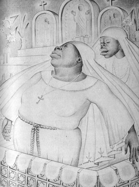 Some of Saxon's openness was owing to pressure from the Washington headquarters on local and state offices to be culturally inclusive in their coverage. It led to a constant tug of war between the metropole and the Jim Crow provinces, with the latter often refusing to budge. The Mississippi guide described the typical black inhabitant as "a genial mass of remarkable qualities…carefree and shrewd....As for the Negro question—that, too, is just another problem he has left for the white man to cope with." Other southern volumes in the series were not much better. Saxon was never this crude. The New Orleans staff took seriously the charge to be of help to the "Negro traveler" by delineating African American entertainment venues and institutions, and by taking note of black cultural and artistic contributions. They brushed aside complaints from university music department heads that "too much credit was being given to the colored people and their type of music and too little to musical culture among white people." The New Orleans group were not afraid to take risks. The talented visual artist Caroline Durieux, who did many of the line drawings for the guide, palmed herself off as a pickpocket in order to gain entry to a black demimonde otherwise closed to average whites. Apparently, so did Saxon himself—but under the cover of a mask during carnival season.