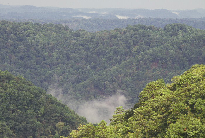 Mark Schmerling, Mists rise over the Paint Creek Trail, Kanawha County, West Virginia, 2006.