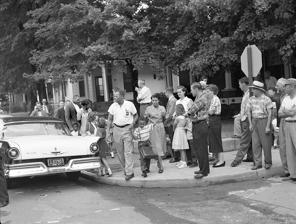 When most of the children were gone, Miss Cate saw that no one had come for Patricia Watson. "I decided to take the child home in my own car," she later told police. "As I paused before backing into the street, one of the men standing beside the car verbally protested my transporting a Negro child." At the home, she learned that the mother, too frightened to walk back and meet her daughter inside the school, had called the taxi to pick her up.