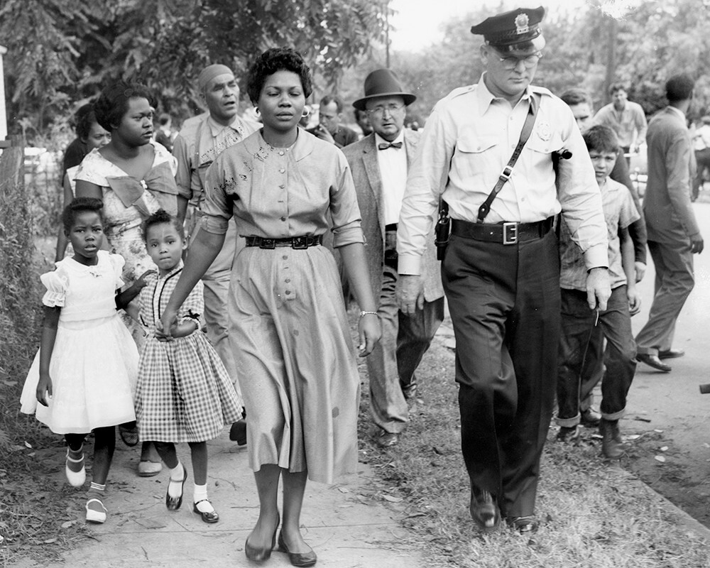 When they turned the corner onto Garfield Street, a block from the school, they could see and hear the crowd: sign-waving demonstrators, police officers, curious neighbors (white and black), parents arriving with their children, school personnel, reporters and photographers—more than two hundred people in all. Having been warmed up by Kasper and Stroud, the protesters released a flood of epithets upon the mother and the two little girls; clutching their hands, she steered a path to the front door and entered.