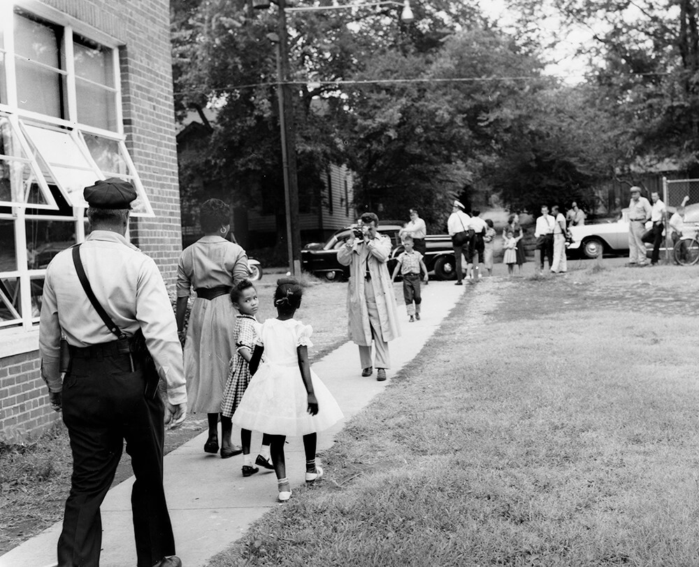 "The day school started, I got Linda up, we got dressed, ate something. We must have been nervous. My mama said, 'Don't go down there with an attitude,' and I didn't, but my daddy was walking right behind me—to help me stay calm, I guess. Rita went with us that morning. Her mother said she was afraid to go. I never was afraid to stand up for my rights."