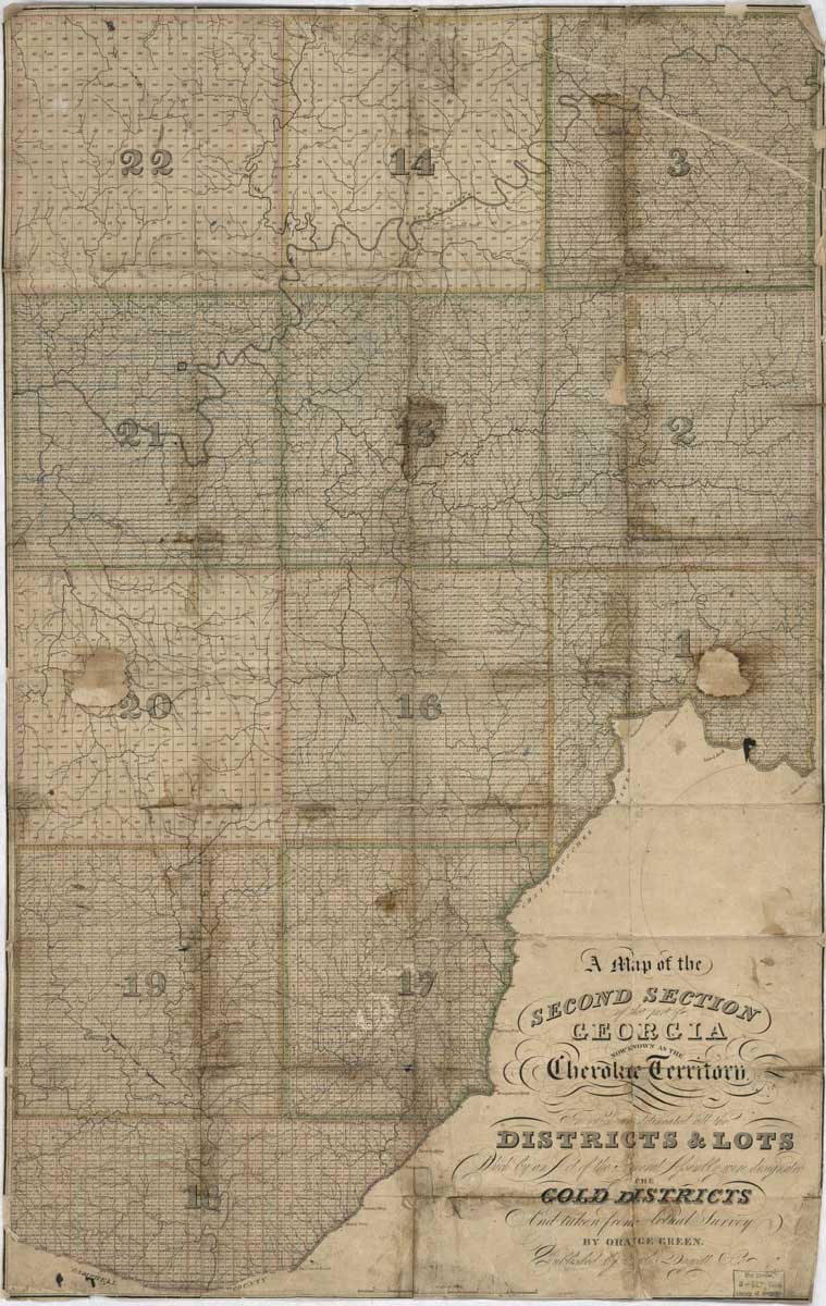 | A map of the second section of that part of Georgia now known as the Cherokee Territory, 1830, Library of Congress Map Collections, 82690523. Ellijay, in the 11th District, is not pictured on this map. |