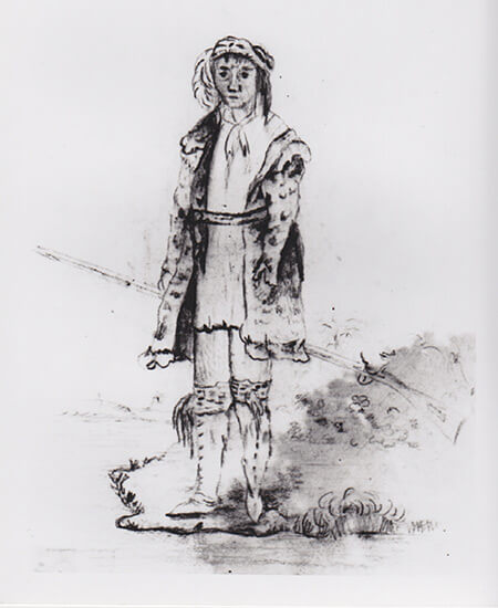 | Mountain Cherokee (untitled sketch). Ink drawing in the diary of Lt. John Wolcott Phelps, 1838, Tebeau-Field Library of Florida History and the Florida Historical Society, Cocoa, Florida. |