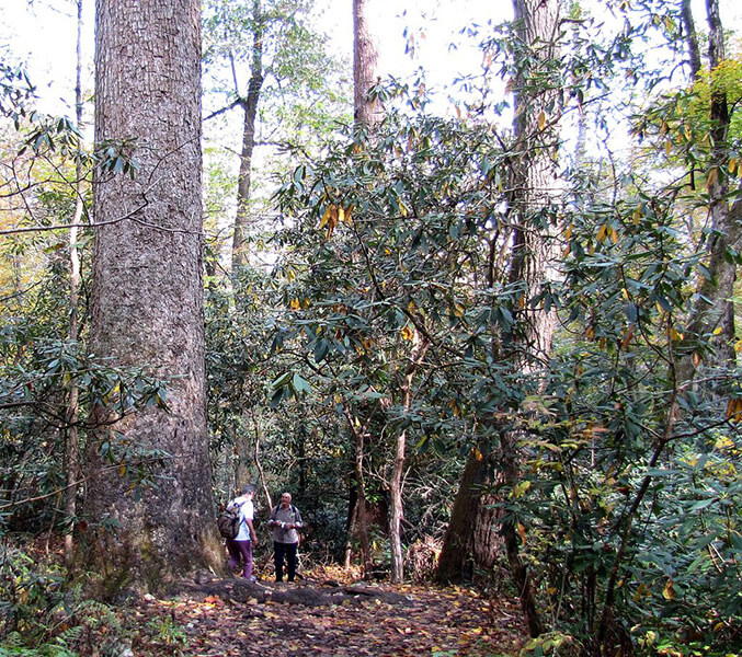 | Brian Stansberry, Visitors stand next to a 400-year-old tree at the Joyce Kilmer Memorial Forest in Graham County, North Carolina, October 2010. |