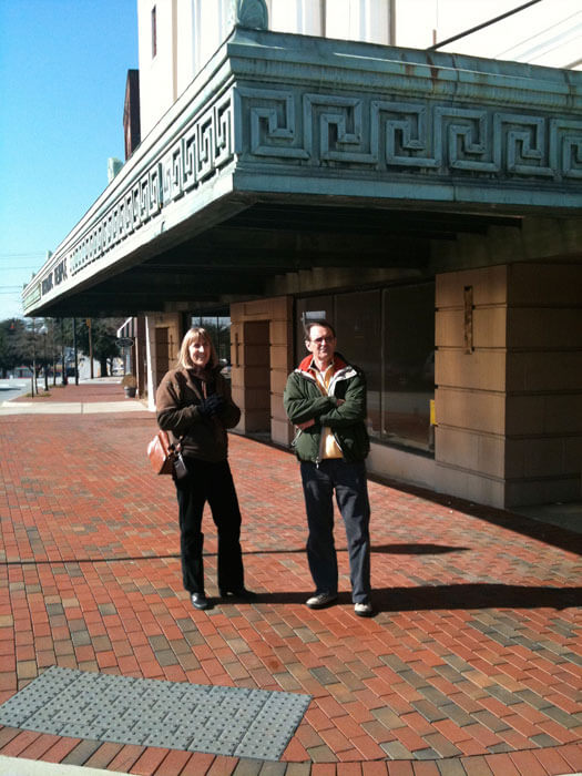 | John Lane, Betsy Teter and Gary Henderson outside the Hub City Bookshop, Spartanburg, South Carolina, 2010. |