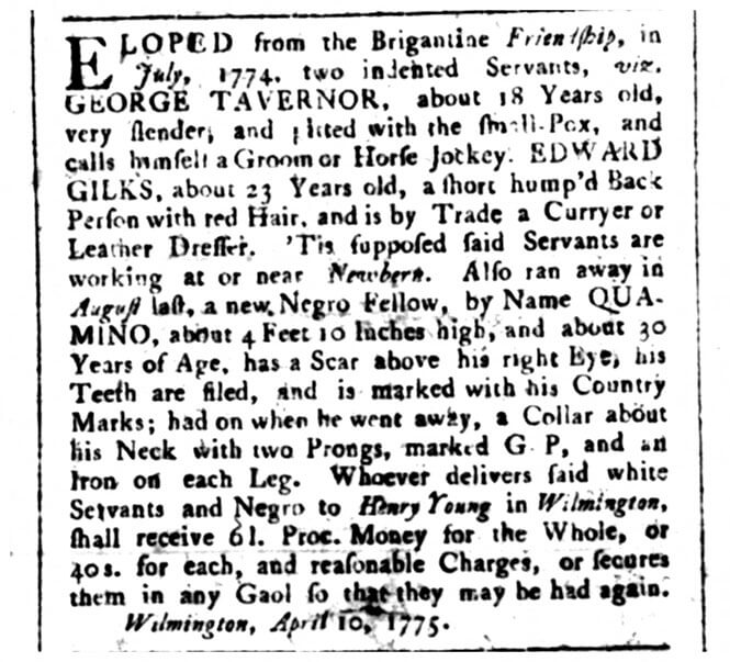 Advertisement for a runaway slave, North Carolina Gazette, May 5, 1775. Courtesy of the North Carolina Runaway Slave Advertisements database.
