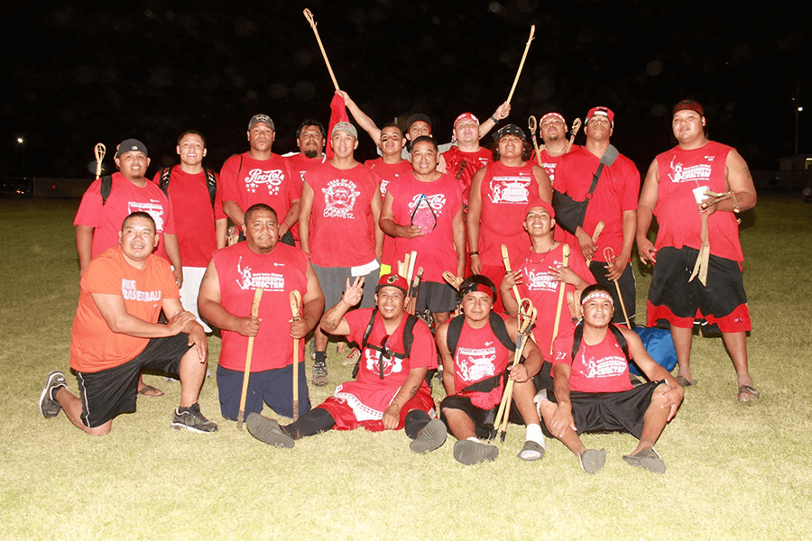 Choctaw Nation Labor Day Stickball Tournament. Photograph of Beaver Dam Team. Posted to Mississippi Band of Choctaw Indians Public Facebook Page, September 2, 2014.