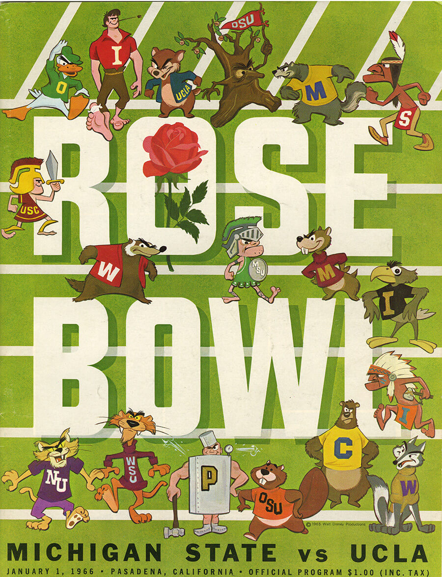 | Program for the 1966 Rose Bowl featuring Michigan State vs. UCLA. The Michigan State Spartans won the 1954 and 1956 Rose Bowl games. However, the Spartans lost the 1966 match up with UCLA. Photograph reproduced by permission of the Duffy Daugherty Papers, Michigan State University Archives & Historical Collections, 1966. © Michigan State University. |
