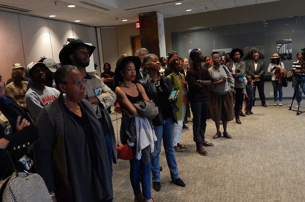 The crowd at LiFT Art Salon awaits the next performance, Gallery 72, Atlanta, Georgia, October 18, 2015. Photograph by Clint Fluker. Courtesy of LiFT Art Salon.