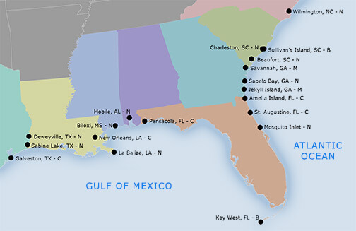 3. These cities include New York, New York, New Orleans, Louisiana, Hampton, Virginia, Oakland, California, Miami, Florida, Key West, Florida, and Galveston, Texas.