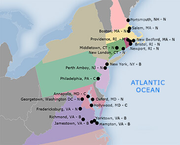 Three locations have installed markers: Historic Jamestowne, Virginia; Yorktown, Virginia; and Sotterley Plantation in Hollywood, Maryland. Eight locations are planning for ceremonies and/or marker installations: Boston (scheduled for August 23, 2015); Bristol, Rhode Island; Annapolis, Maryland (scheduled for February, 2015); Philadelphia, Pennsylvania; Galveston, Texas; Fredericksburg, Virginia (scheduled for 2015); St. Augustine, Florida (scheduled for February 7, 2015); and Perth Amboy, New Jersey. Two cities are reviewing historical evidence to determine if they will support the designation of Middle Passage arrival ports: Baltimore and Oxford, Maryland.