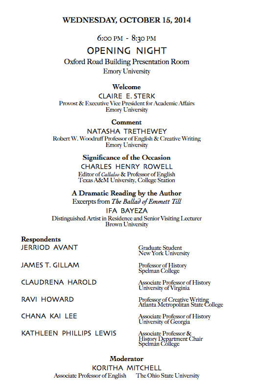 Callaloo, a journal of African diaspora arts and letters established in 1976, held its 2014 conference at Emory University from October 15–18. This event brought together creative and critical voices from in and outside the US to present and discuss artistic expressions ranging from poetry, the visual arts, fiction, and music to archiving and cultural preservation. Southern Spaces video-recorded this remarkable conference and, in collaboration with Callaloo, presents a series of conference highlights. Southern Spaces thanks Callaloo founder and editor Charles Henry Rowell, managing editor Jackson Brown, and Emory provost Claire Sterk for their support of this conference and series.