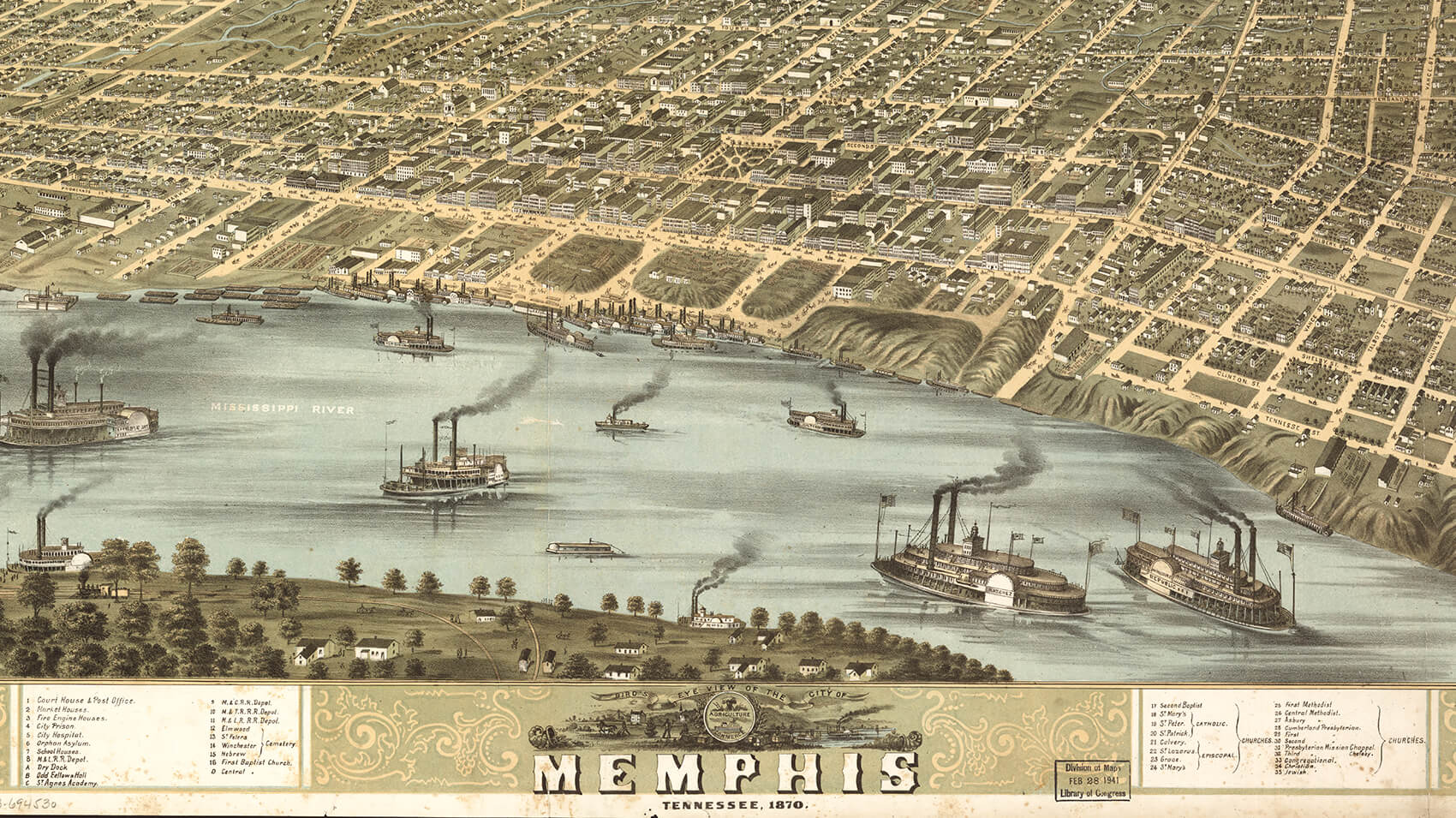 Bird's eye view of the city of Memphis, Tennessee, 1870. Map by A. Ruger. Courtesy of the Library of Congress Geography and Map Division, loc.gov/resource/g3964m.pm009010/.