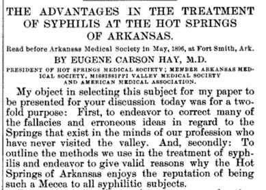 Walls, Edwina. "Hot Springs Waters and the Treatment of Venereal Diseases: the U.S. Public Health Service Clinic and Camp Garraday." The Journal of the Arkansas Medical Society 91, no. 9 (1995): 433–437.