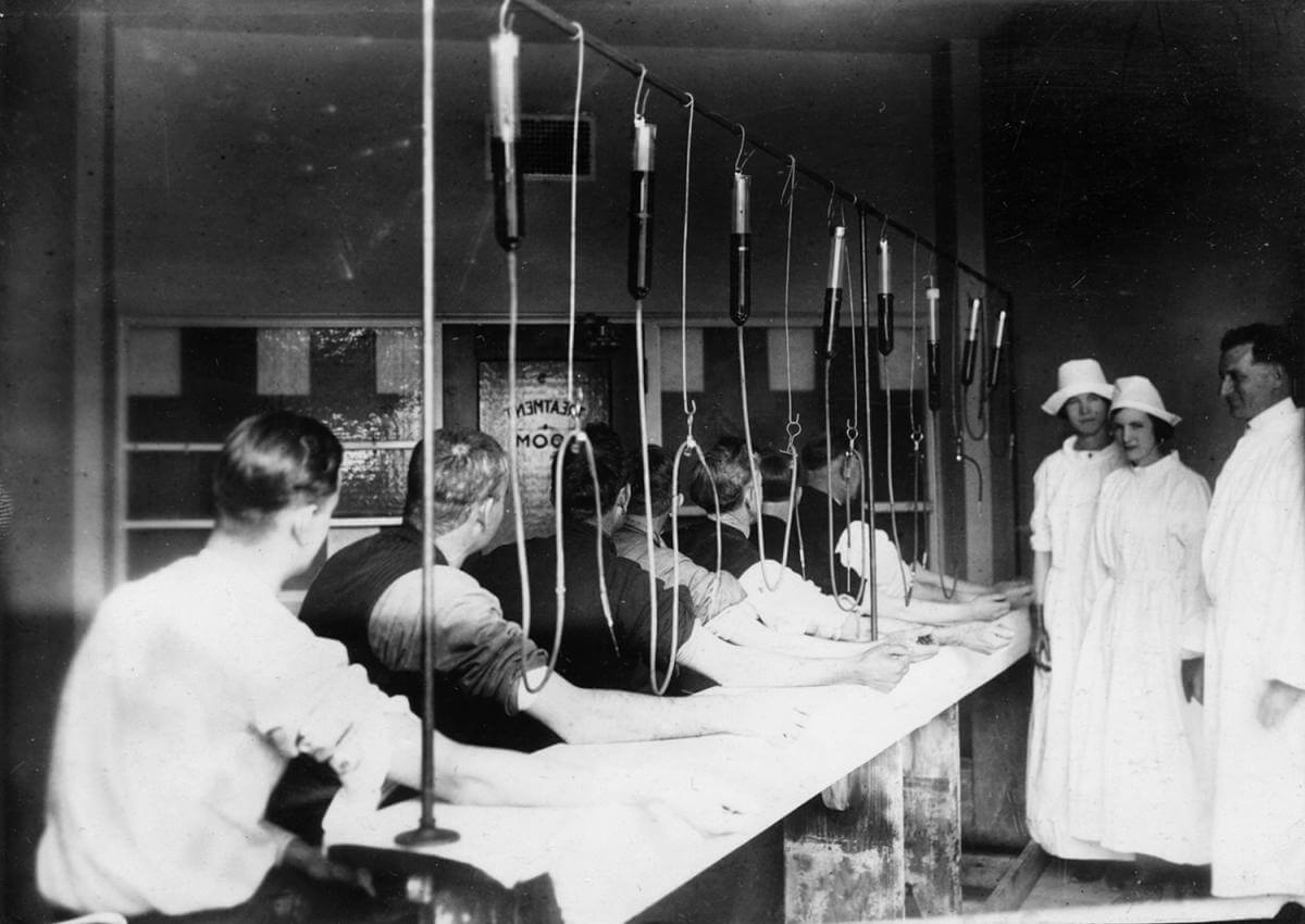 The PHS sought means of accelerating the therapeutic process. Among the myriad venereological experiments conducted at Hot Springs, none loomed larger than those undertaken within the Salvarsan room. During the early 1920s clinic personnel began "the intensive and continuous plan of treatment."56McCully, "The United States Public Health Service." In the typical VD clinic, patients received one dose of Salvarsan per week; in Hot Springs, they would receive twice that amount.57J.R. Waugh and Elizabeth Milovich, "Severe Reactions to Arsphenamine among 3,050 Previously Untreated Patients," Journal of Venereal Disease Information 21, no. 12 (1940): 391. The Hot Springs clinic, it bears noting, was far from the only site where this experimental use of Salvarsan took place. In the medical literature of the time, many physicians reported success with an accelerated treatment regimen, and some recommended giving as many as three doses in a twenty-four hour period. One advocate advised colleagues to "give the largest possible amount of salvarsan in the shortest possible time." Faxton E. Gardner, "The Treatment of Syphilis," Medical Times 45 (1917): 63. For more discussions of the intensive and continuous treatment of syphilis with Salvarsan, see Frederick W. Smith, "The Modern Diagnosis and Treatment of Syphilis," Medical Record 91 (1919): 186–91; B.C. Corbus, "Prophylaxis in Cerebrospinal Syphilis," Journal of the American Medical Association 69, no. 25 (1917): 2087–9; Carlyle N. Haines, "Salvarsan in Syphilis," Pennsylvania Medical Journal 24 (1921): 839–41.