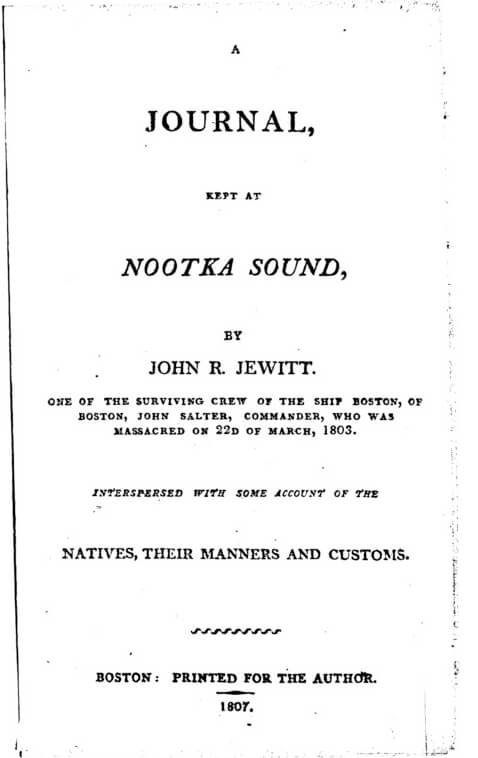 Title page of John R. Jewitt's Journal Kept at Nootka Sound (Boston, MA: 1807). Courtesy of Early Canadiana Online.
