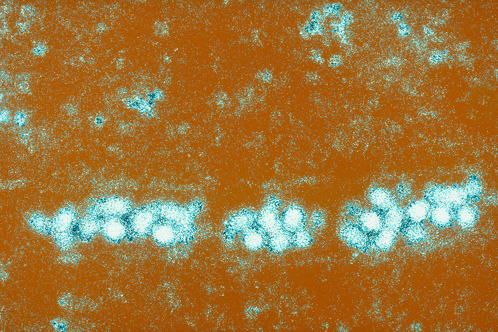 Top, Aedes aegypti mosquito, August 20, 2012. Colored drawing by A.J.E. Terzi. Image uploaded by Flickr user Wellcome Images. Creative Commons license CC BY-NC-ND 2.0. Bottom, Electron microscope image of the virus responsible for yellow fever, August 7, 2013. Photograph by Alain Grillet. Image uploaded by Flickr user Sanofi Pasteur. Creative Commons license CC BY-NC-ND 2.0.