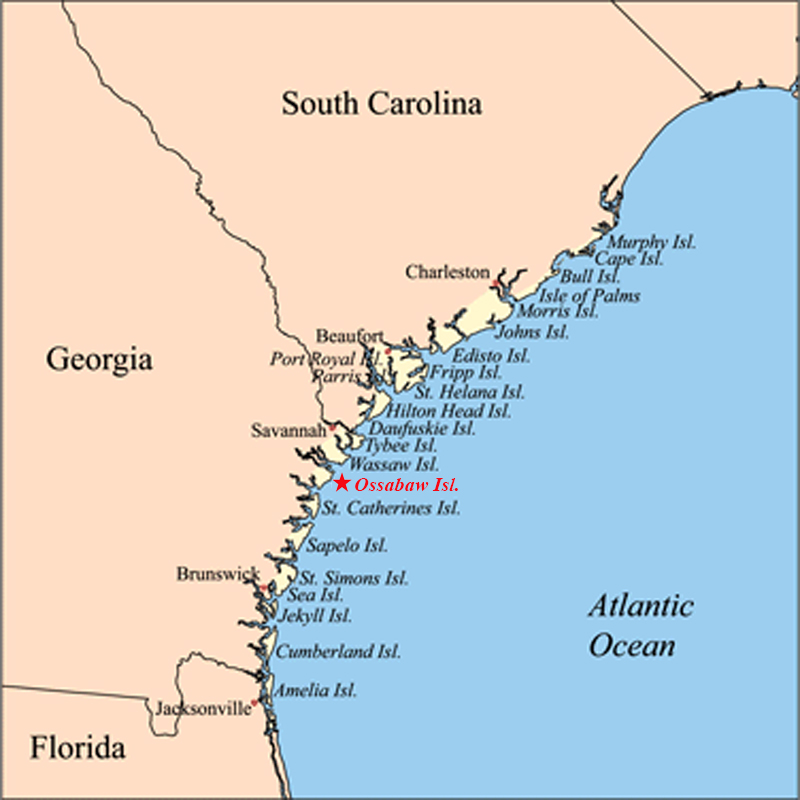 Ossabaw Island in the Sea Islands Watershed. Original map courtesy of Wikimedia Commons. Creative Commons license CC BY-SA 2.5.