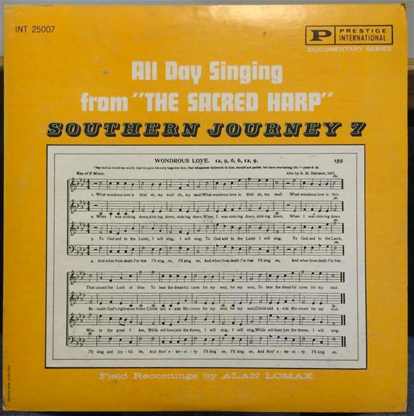 | 11. | Alan Lomax and Alabama Sacred Harp Singers, All Day Singing from "The Sacred Harp," recorded 1959, 33 1/3 rpm record, Southern Journey (Bergenfield, NJ: Prestige, 1961). |