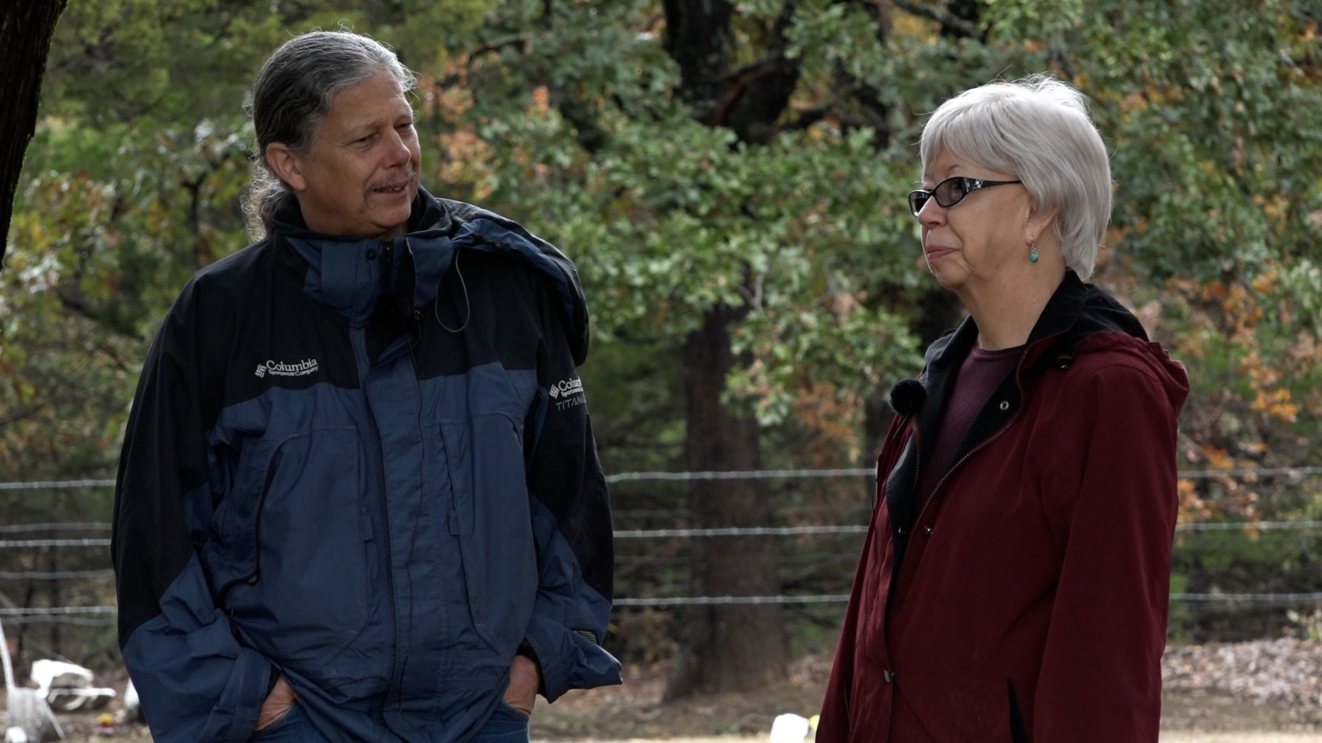 Rosemary McCombs Maxey talks with Craig Womack, Dustin, Oklahoma, 2015. Screenshot from Hearing the Call. Courtesy of Southern Spaces.