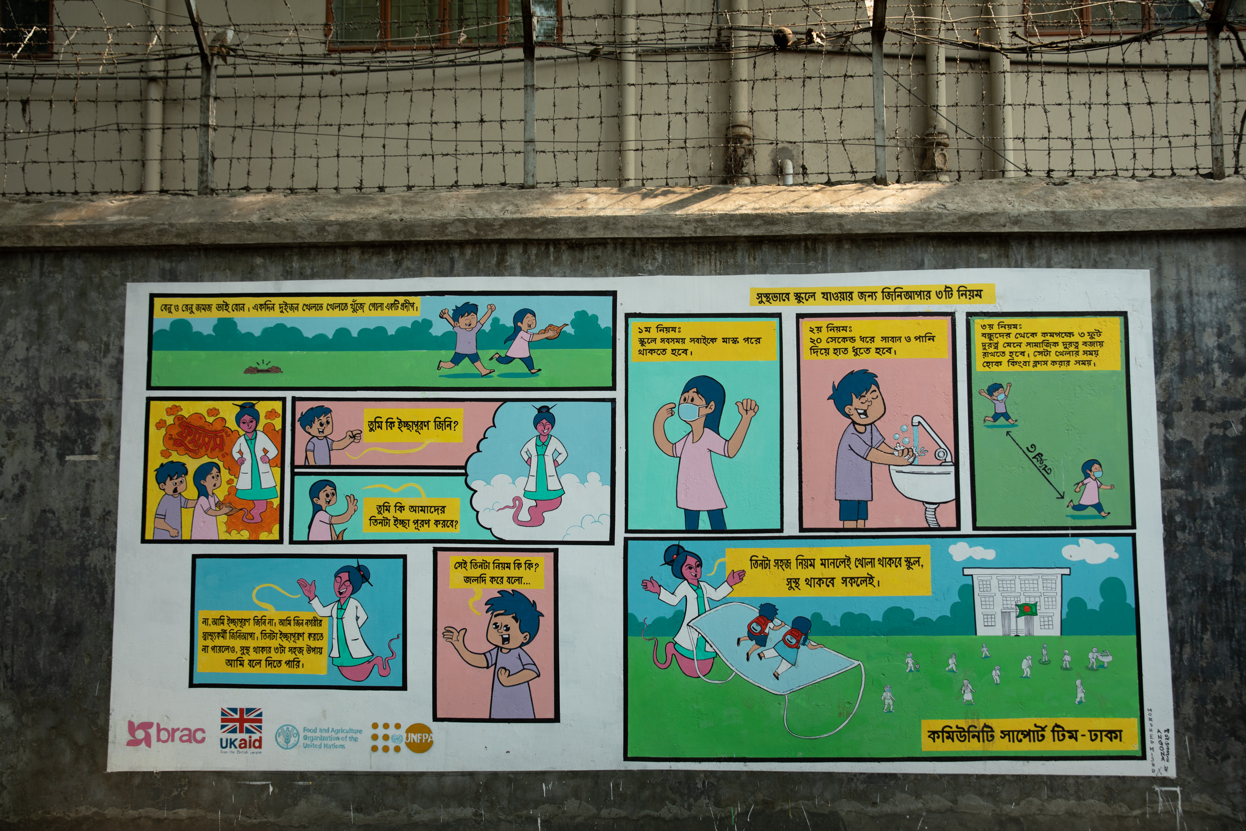 Long perceived as reliable messengers in Bangladesh, local artists often translate crucial information into personable and understandable forms. Working with these artists, BRAC delivered COVID-19 information to schools in an engaging way. Renowned cartoonist Morshed Mishu developed wall murals in Dhaka and Cox's Bazar and 200,000 copies of a comic strip were distributed among schools and madrasas.