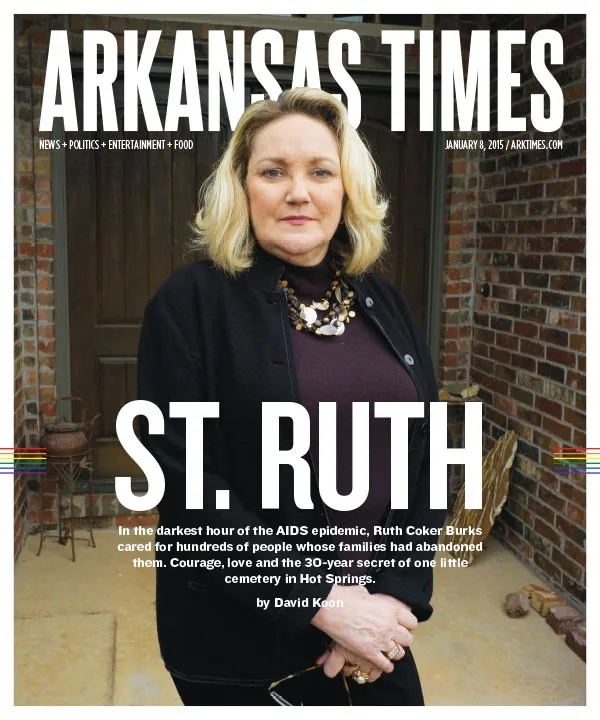 Ruth Burk’s celebrated (and contested) legacy as an AIDS caregiver and activist is represented in headlines from the Arkansas Times, the local paper that conducted much of the initial research about her. In 2015, David Koon lauded Ruth as "the cemetery angel." The cover story subtitle reads: "In the darkest hour of the AIDS epidemic, Ruth Coker Burks cared for hundreds of people whose families had abandoned them. Courage, love, and the 30-year secret of one little graveyard in Hot Springs.” Photograph of Ruth by Brian Chilson for the Arkansas Times, January 8, 2015. Courtesy of the authors and the Center for Arkansas History and Culture.