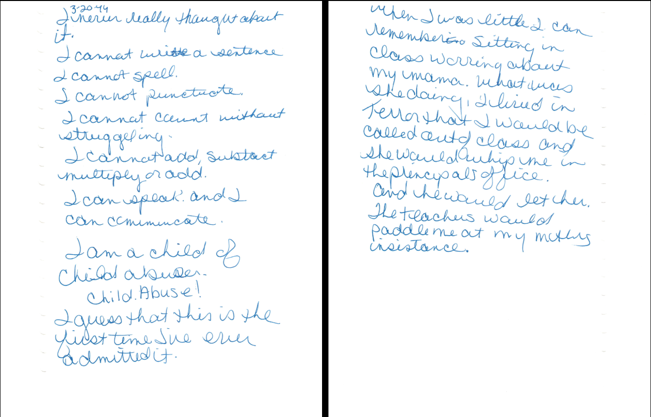 Journal entry by Ruth Coker Burks. March 20, 1999. Courtesy of the authors and the Center for Arkansas History and Culture.