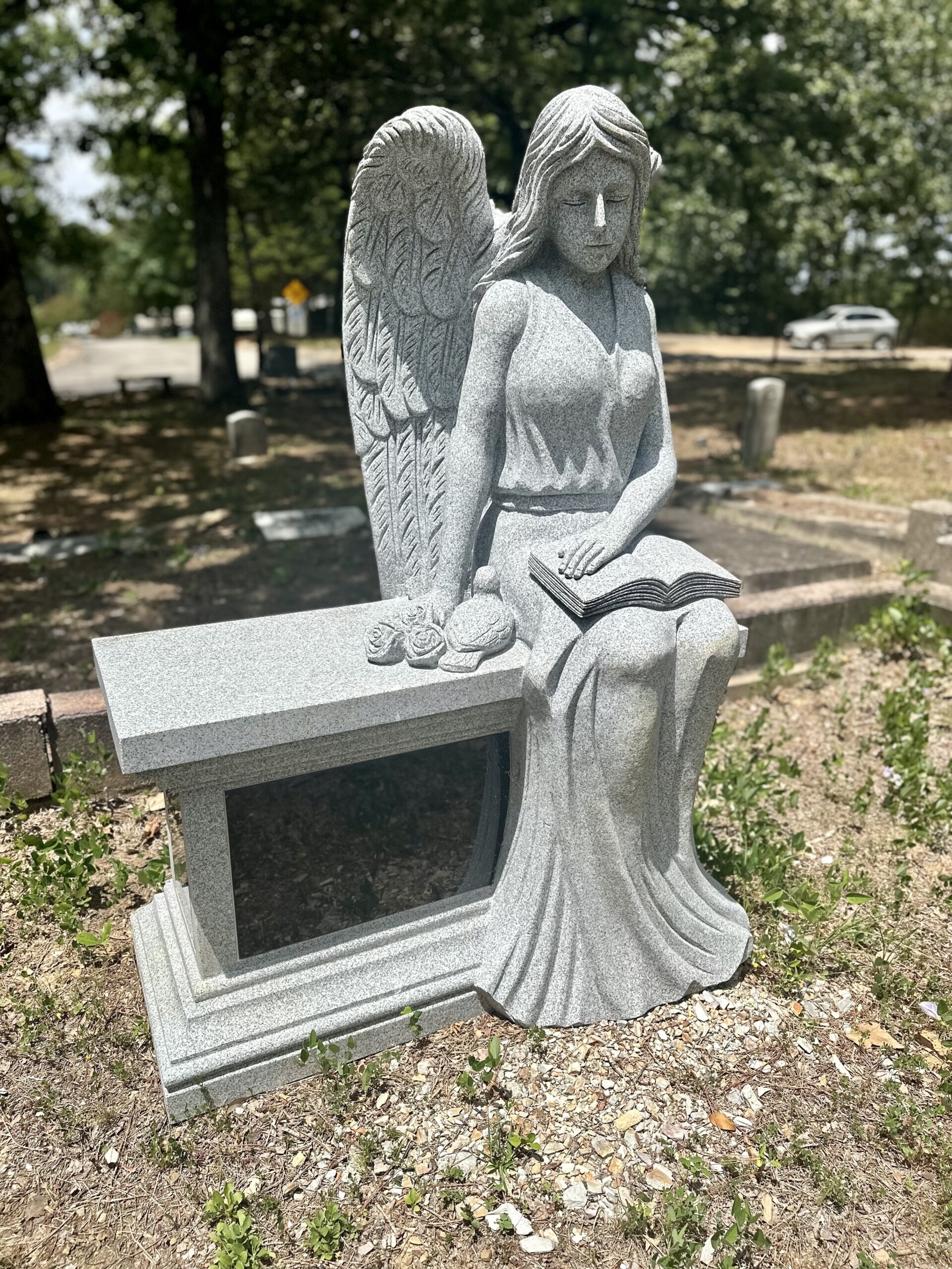 The Files Cemetery Angel, Hot Springs, AR, 2022. Monument by Pacific Coast Monuments. Ruth commissioned the statue and oversaw its installment at Files Cemetery. Photograph by and courtesy of Jess Porter.